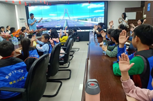 活動(dòng)開(kāi)始,龍巖市政集團(tuán)工作人員首先向小記者們簡(jiǎn)要宣講了黨的二十大精神以及市政集團(tuán)黨建品牌“城市建設(shè)·先行者”的深刻內(nèi)涵,同時(shí),結(jié)合中心城市路網(wǎng)規(guī)劃圖、項(xiàng)目實(shí)景圖、工程現(xiàn)場(chǎng)監(jiān)控等方式,展示了已建成投入使用的蓮花山棧道、大錦山公園、龍工大廈、火車站片區(qū)道路、龍巖大道四期、濱河綠道等項(xiàng)目,讓小記者們對(duì)市政集團(tuán)有了初步的了解。